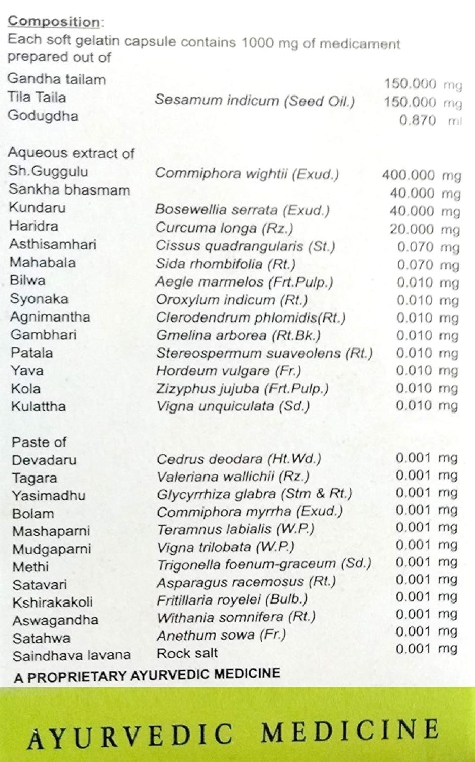 For Osteo-arthritis, degeneration of Cartilages, Inflammation, Pain, Mobility.